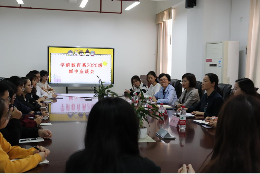 11月26日下午,学前教育系在综合楼七楼第三会议室开展新生座谈会。学前教育系党总支书记吴春艳老师、系主任林毓君老师、系综合科科长杨美玲、辅导员陈晓萌以及学前教育系2020级新生代表参与本次座谈会。此次座谈会在轻松、欢乐的氛围中开展。