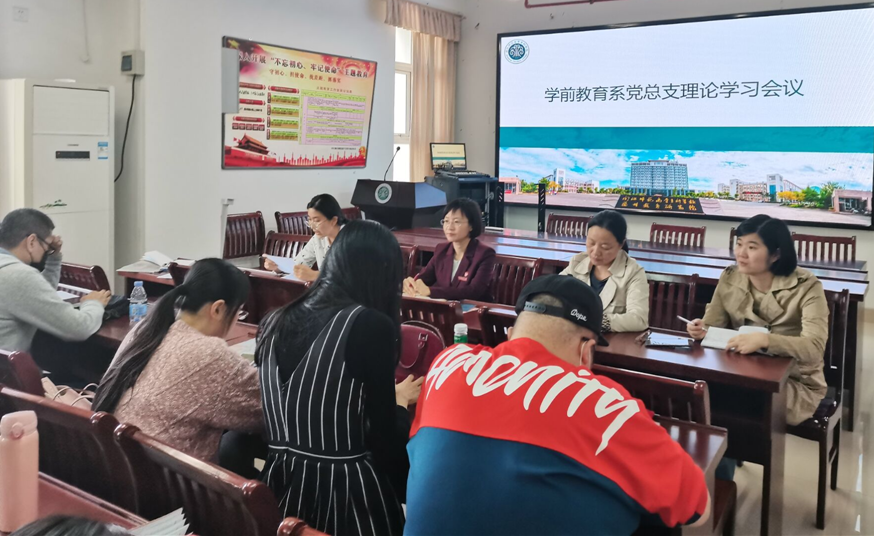 2020年11月11日,学前教育系组织全体教师共同学习十九届五中全会精神、习近平总书记近期讲话精神、崇尚科学防范邪教相关知识。会议由学前系党总支书记吴春艳主持。