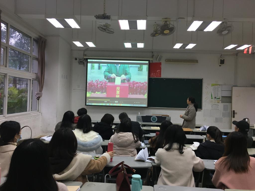 林毓君主任带领大家一起学习了习近平总书记在中央全面依法治国工作会议上的讲话,强调了我们要坚定不移走中国特色社会主义法治道路,要为全面建设社会主义现代化国家提供有力法治保障,并组织大家一起观看了宪法宣传周的视频,她提出全体教师要进一步树立宪法意识和法治观念,认真履行教师职责,做一名知法、守法、用法、护法的高校教师。