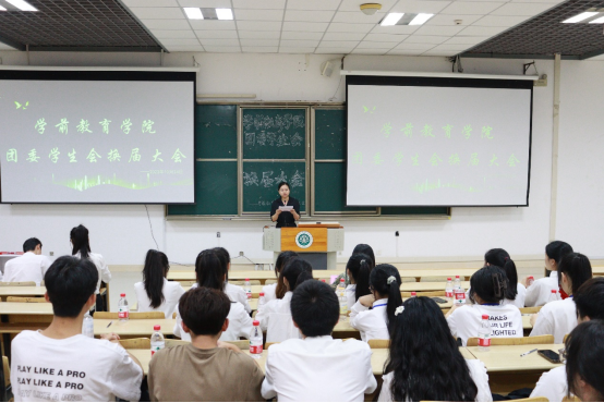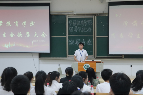按照学校对学生组织和学生干部管理工作要求,我院于2023年10月24日在3018教室成功举办学前教育学院团委、学生会等学生组织的干部换届大会。学院辅导员黄倩倩老师、王玮老师以及团委学生会的各级干部参加本次会议。