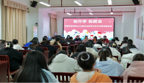 为落实学院提升“三率”促进高质量就业工作要求,12月19日下午,在党员活动室召开了助力2024届毕业生专升本备考工作座谈会。学院领导班子,毕业班辅导员,以及各毕业班意向专升本同学代表50余人参加了会议。
