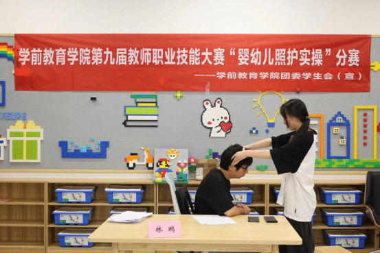 为坚持以赛促教、以赛促学、以赛促改,引领职业教育教学改革,体现职业教育的自身价值和功能,助力学前学生技能成才和全面发展,2024年4月22日,学前教育学院于旗山校区产创楼举办第九届教师职业技能大赛——婴幼儿照护实操分赛初赛。我院22级早教、托育专业全体同学参与,比赛由郑剑萍老师、林鹏老师、柯芳芳老师担任评委。