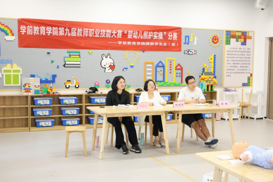 为深入贯彻落实国家、省、市婴幼儿照护相关文件精神,以技能比武,加快培育婴幼儿照护专业人才。2024年5月13日,学前教育学院在旗山校区产创楼E402举办了第九届教师职业技能大赛的婴幼儿照护实操分赛决赛。此次比赛由郑剑萍、林鹏、柯芳芳三位老师担任评委,由从初赛晋级的22级早教、托育专业的20位同学参与。