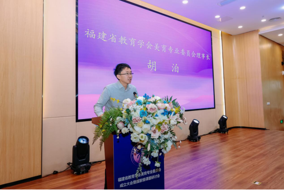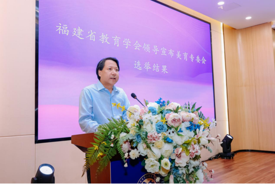 新当选的福建省教育学会美育专业委员会理事长胡泊教授做表态性发言。他表示,在今后的工作中,美育专委会将充分发挥桥梁和纽带作用,加强与各级教育部门、学校和社会各界的沟通与合作,为美育事业贡献力量。他将率领专委会成员,全力以赴,共同推进福建省美育事业的蓬勃发展。