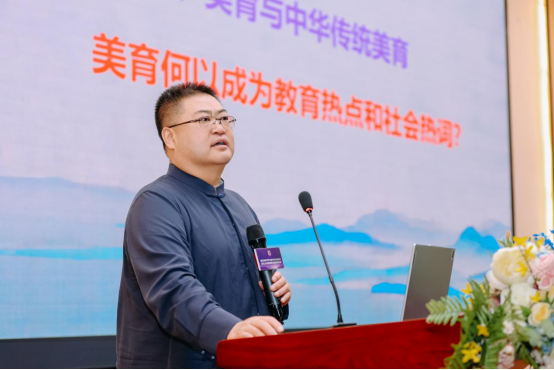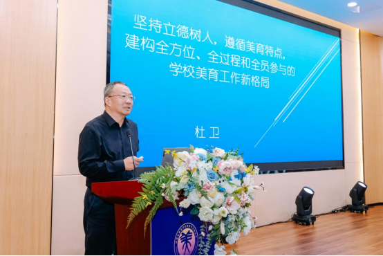 美育专委会成立仪式结束后,会议进入主旨演讲阶段。教育部高校美育教指委副主任委员、中华美学学会副会长、中国高教学会美育专委会理事长、中国美术学院美育研究院院长杜卫作题为《坚持立德树人,遵循美育特点,建构全方位、全过程和全员参与的学校美育工作新格局》主旨演讲,中央美术学院教授、美育研究院院长、马克思主义学院执行院长宋修见作题为《赓续中华美育传统 建构整体性大美育体系》主旨演讲。两位专家以深厚的学术底蕴和丰富的实践经验,结合自身在美育教育领域的研究成果和实践经历,分享了众多成功案例和先进经验,深入探讨了美育教育的发展方向和策略,为在场的师生们提供了宝贵的启示和借鉴。
