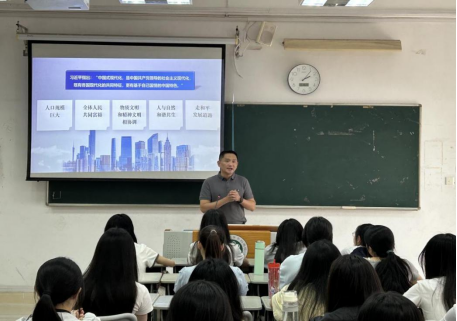 近日,学前教育学院党委书记林冉走进形势与政策的课堂,以“在新时代新征程上奋进谱写中国式现代化新篇章”为主题,为2024级学前教育4班的同学们带来一堂内容丰富的思政课。