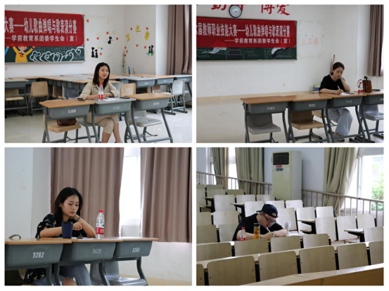 本次比赛包括两个环节,分别是幼儿歌曲弹唱歌表演。比赛开始前,参赛选手们抽取要展示的曲目幼儿歌曲弹唱环节,参赛选手们到达指定教室后,根据抽取的曲目进行弹唱。弹唱过程中,大家认真、专心地投入到歌曲的演奏中教室里不时传来一首首动听的儿童歌曲。在歌表演环节,选手们用生动活泼的肢体语言表达了对歌曲的理解充分展示了学前学子的活泼形象现场竞赛氛围十分浓烈。