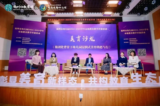 福州教育研究院银龄教研员林云芝教研员、福州市仓山区实验幼儿园陈瑜园长、福州市晋安区直属机关幼儿园王丹园长、福州市蓓蕾幼儿园王蓉园长、闽侯县实验幼儿园教育集团温红云园长分别针对福州幼教集团各会场进行点评。充分肯定了集团各园在幼儿美育教育的突出成绩,同时以现场具体案例为例,诊断分析、梳理总结,强调教师在实施美育过程中要落脚于理解幼儿的学习方式,尊重幼儿发展的规律。她们强调:在集团化办学背景下,各附属幼儿园要立足全国教育科学规划教育部重点课题《基于生态系统理论的幼儿园浸润式审美教育实践研究》,秉承求真务实探索实践原则,逐步生发和完善自身园本课程建设,最终实现在集团大美育课程观下“各美其美”“美美与共”的美好目标。同时以课题促进教师专业提升,以科研推动幼儿园高质量发展,最终形成切实可行的幼儿浸润式审美教育实践路径,助力区域幼儿教育提质增效。