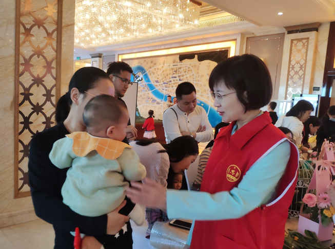 在母婴喂养咨询区域,志愿服务现场除了小朋友们,也迎来了很多家长。他们抱着怀里的婴儿也参与到活动中,看到母婴喂养咨询区,便主动地上前询问。志愿者从自己专业的角度为家长们解答了关于婴儿喂养过程中遇到的一系列问题。比如:喂养的正确姿势是怎么样的?从什么时候开始喂养辅食比较好?婴儿不吃奶粉应该怎么办?