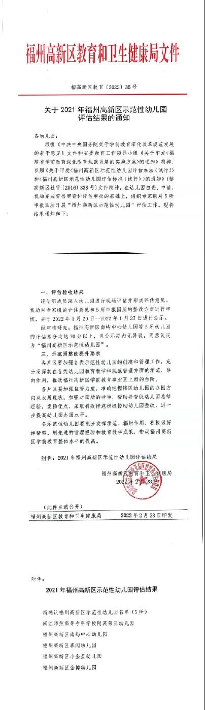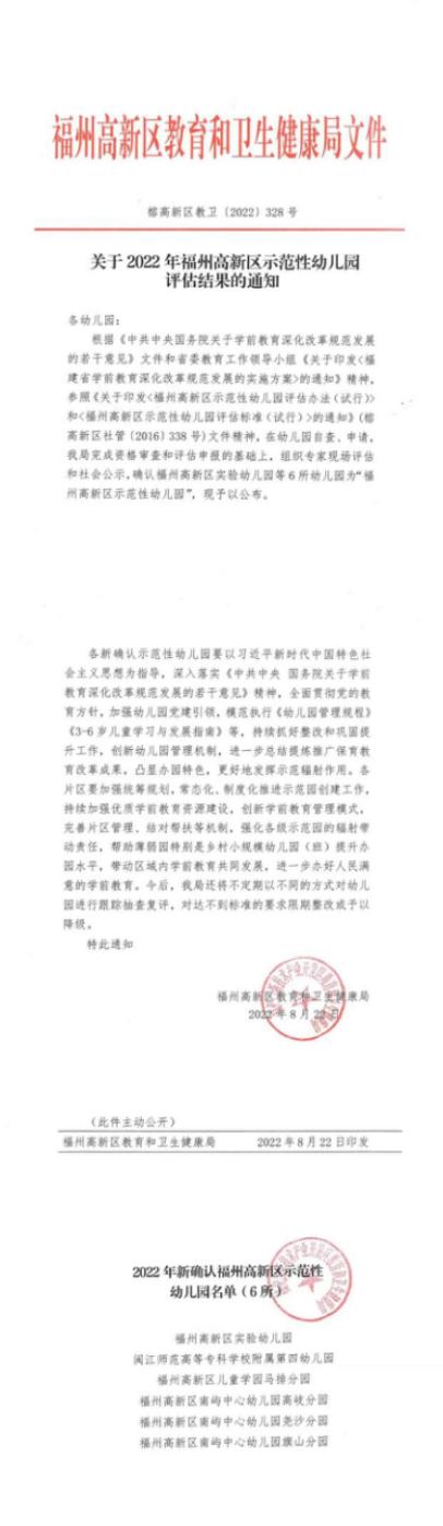 大赢家体育app下载附属三园、大赢家体育app下载附属四园自2020年创园以来,得到高新区属地政府与教育主管部门的关心与指导,在闽江师专与福州幼教集团的引领下,两所幼儿园本年度依次被评为“高新区示范性幼儿园”。