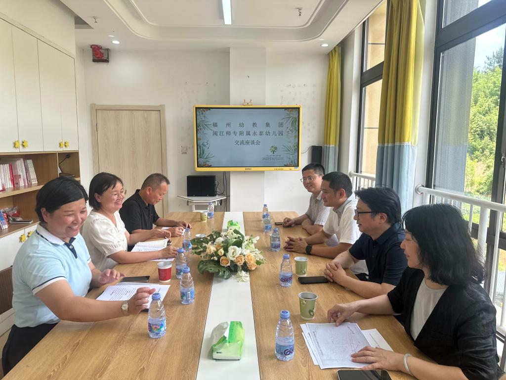 座谈会上,双方就如何提升教学品质、优化课程设置以及加强教师团队的专业发展等方面进行了深入探讨。针对附属永泰幼儿园即将面临“福州市市级示范性幼儿园评估”工作,双方就下一步的评估帮扶进行了细致的交流和规划。林冉书记强调:附属永泰幼儿园作为闽江师专振兴乡村学前教育的重要一环,必须全力以赴,以高标准、严要求做好迎评准备工作。同时要求集团迅速组织骨干教师团队,借助“高校院系-幼儿园”融合办学的平台和集团各优质园所的示范辐射作用,通过线上研讨、案例分享、现场调研、跟岗座谈等多种方式,切实找出了附属永泰幼儿园迫切需要解决的难题,并提出有效和最佳的整改方案,助力其顺利通过市级评估。