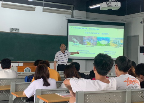 授课中,李瑞兴主任围绕学生关注的热点问题和思想政治育人要求,从“格局重构,竞争加速”、“把握机遇,应对挑战”、“深化改革,自立自强”、“数字展示技术专业的机遇与挑战”和“大学生目标与任务”五个部分,通过列数字、举例子、讲趋势,生动而深刻地进行了详细剖析和具体阐述。