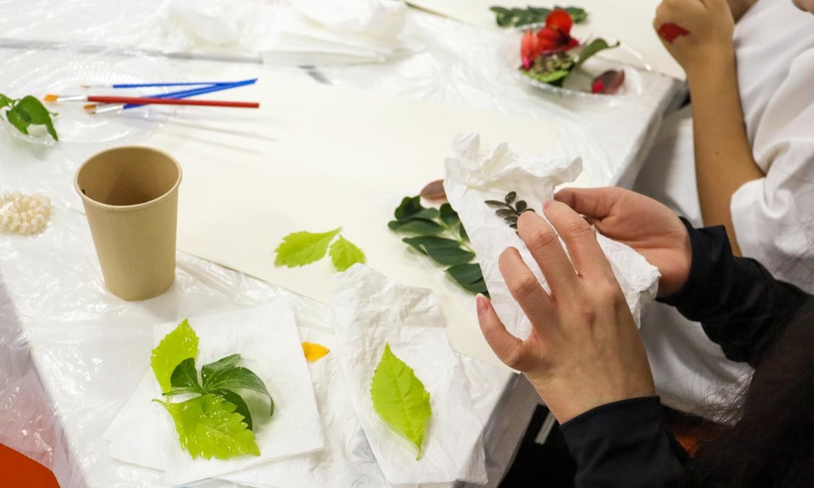 这次植物拓印活动不只是一场简单的手工创作,它更像是一场心灵的治愈之旅。在敲击叶片、拓印纹理的过程中,同学们沉浸其中,暂时忘却了学习的压力,获得了沉浸式的放松体验,仿佛时间都慢了下来。看着那些鲜活的植物在自己手中变成艺术品,大家更加深刻地感受到了生命之美,内心也愈发平和、愉悦。