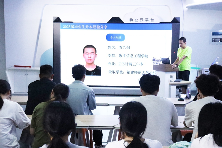 为充分发挥优秀毕业生的示范引领作用,助力在校学生全面了解专升本考试政策、科学规划备考策略,数字信息工程学院于6月13日在2-305和3-604教室圆满举办了“锦鲤有约”2025届毕业生专升本经验分享交流会。六位在2025年专升本考试中取得优异成绩的毕业生受邀分享经验,2023级和2024级逾百名学生通过线上线下相结合的方式参与此次活动。