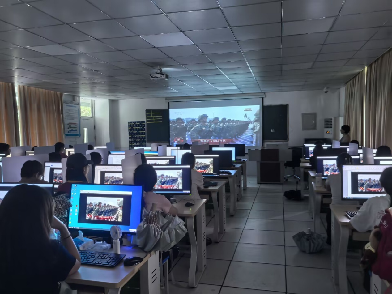 直播过程中,全体师生全程专注观看,深刻体会新时代国防和军队建设的铿锵步伐与辉煌成就。这场跨越时空的纪念大会,也点燃了我院师生的热议热潮,多位师生代表分享了他们的观礼感受。