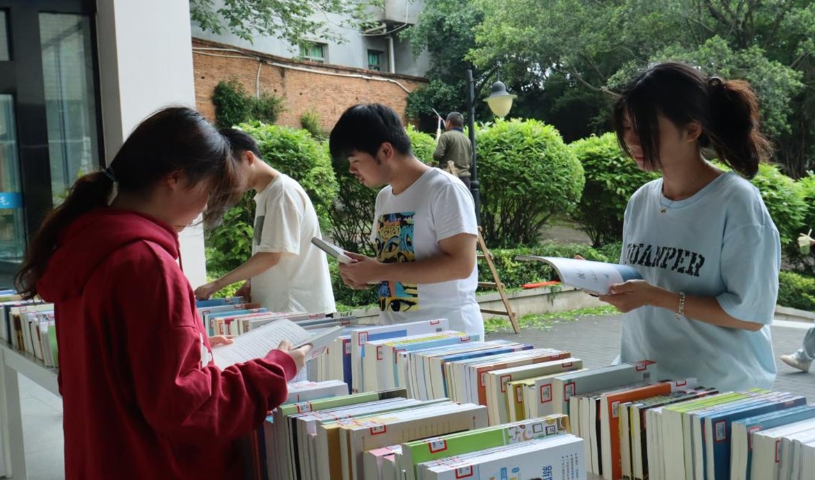 活动现场,志愿者们协助图书馆老师将馆内书籍搬运到图书馆门口,细心地为书本贴上推荐便签。这些承载着人类智慧结晶的书籍,在彼此间流转,传递着知识的厚重。此外,活动还设置了“线下书签制作交换”环节,同学们在现场制作书签并进行交换。在“阅读打卡挑战”环节,同学们围绕近期阅读的书籍,畅谈自己的感悟与收获。