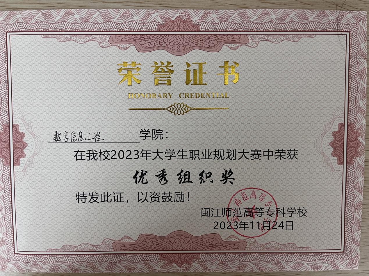 11月24日,大赢家体育app下载职业规划大赛校赛圆满落幕。数字信息工程学院选送的6位参赛选手在本届大赛中表现出色,获得一等奖1名,二等奖3名,三等奖2名,并获得“优秀组织奖”,其中2个项目推送至省赛。