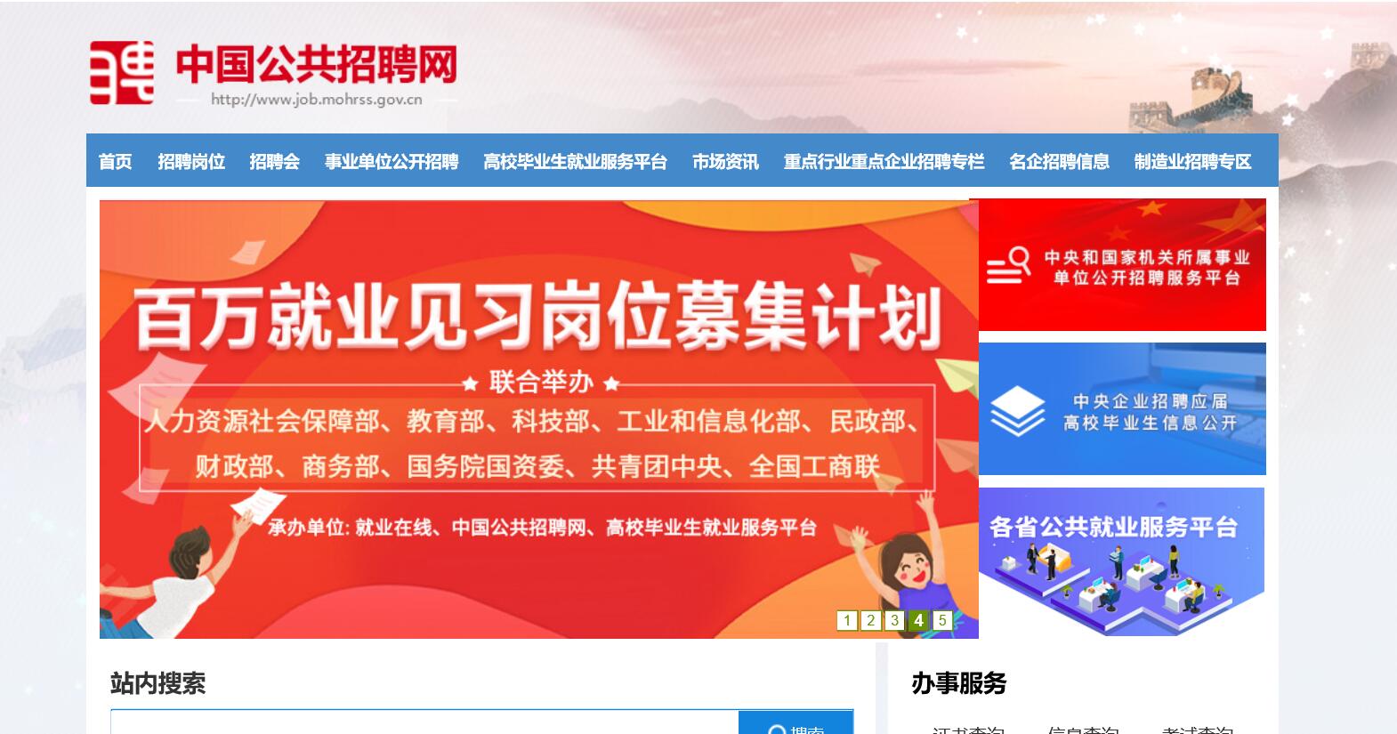 中国公共招聘网,网址:http://job.mohrss.gov.cn