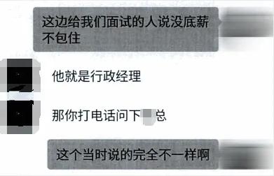 “这边给我们面试的人说没底薪,也不包住……这个当时说的完全不一样啊……”此时求职者如何追问,得到的只是敷衍塞责的说辞。