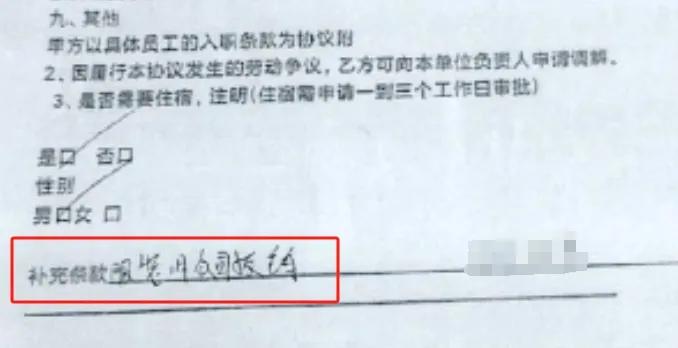 签署的用工协议中另含补充条款,写着“服装费公司报销”,可实际等求职者按约定索要时招工方并不会报销,或根据求职者的“反应程度”退部分费用。