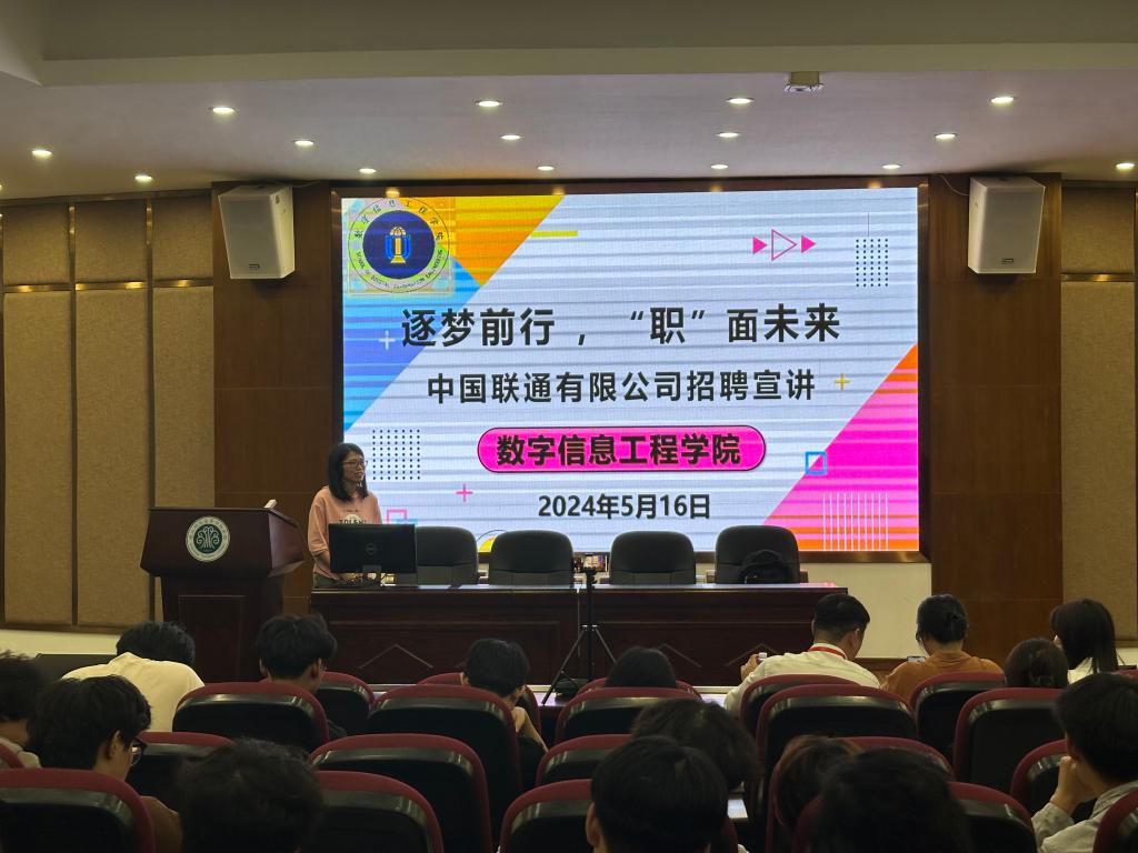 近日,数字信息工程学院举办“逐梦前行 ,“职”面未来”2024届毕业生招聘宣讲会。学院党委副书记董秋锋、毕业班辅导员以及学院2024届、2025届意向毕业生参加活动。