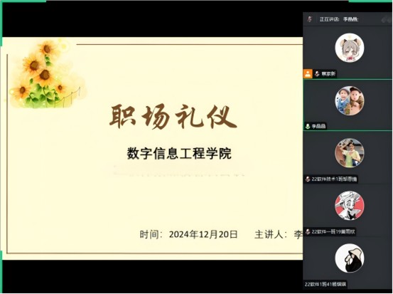 近日,数字信息工程学院成功举办了一场针对2025届毕业生职场礼仪培训会。本次会议以“职场礼仪与沟通技巧”为主题,旨在帮助步入职场的毕业生们掌握必要的职场礼仪和沟通技巧,以便更好地适应职场环境,提升个人竞争力。