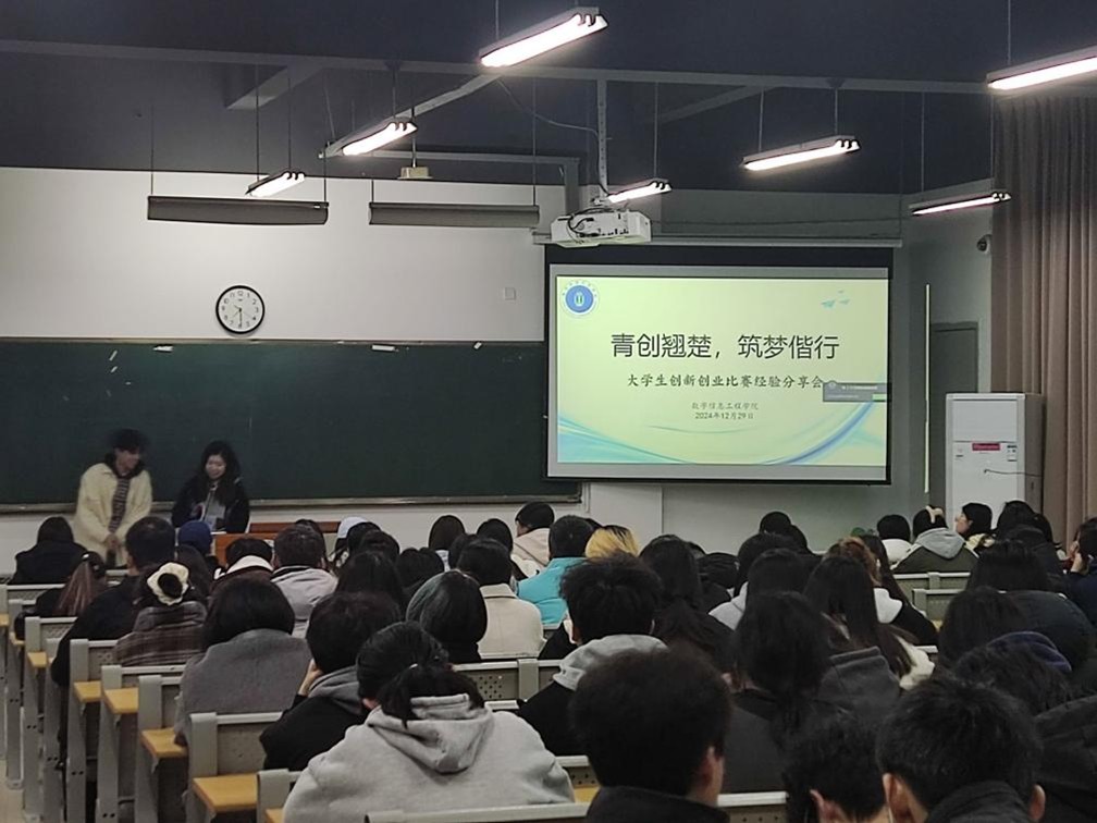 为进一步提升数字信息工程学院学生创新创业能力,激发创新创业热情,丰富校园文化生活,我院于12月29日举办“青创翘楚,筑梦偕行”创新创业经验分享会。本次活动邀请了我院在2024年中国国际创新大赛中获奖的团队代表,向同学们分享宝贵的比赛经验。