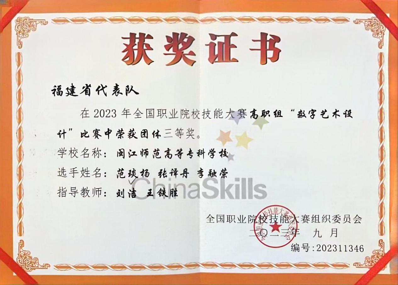 2023年全国职业院校技能大赛(高职组)“数字艺术设计”赛项获三等奖;