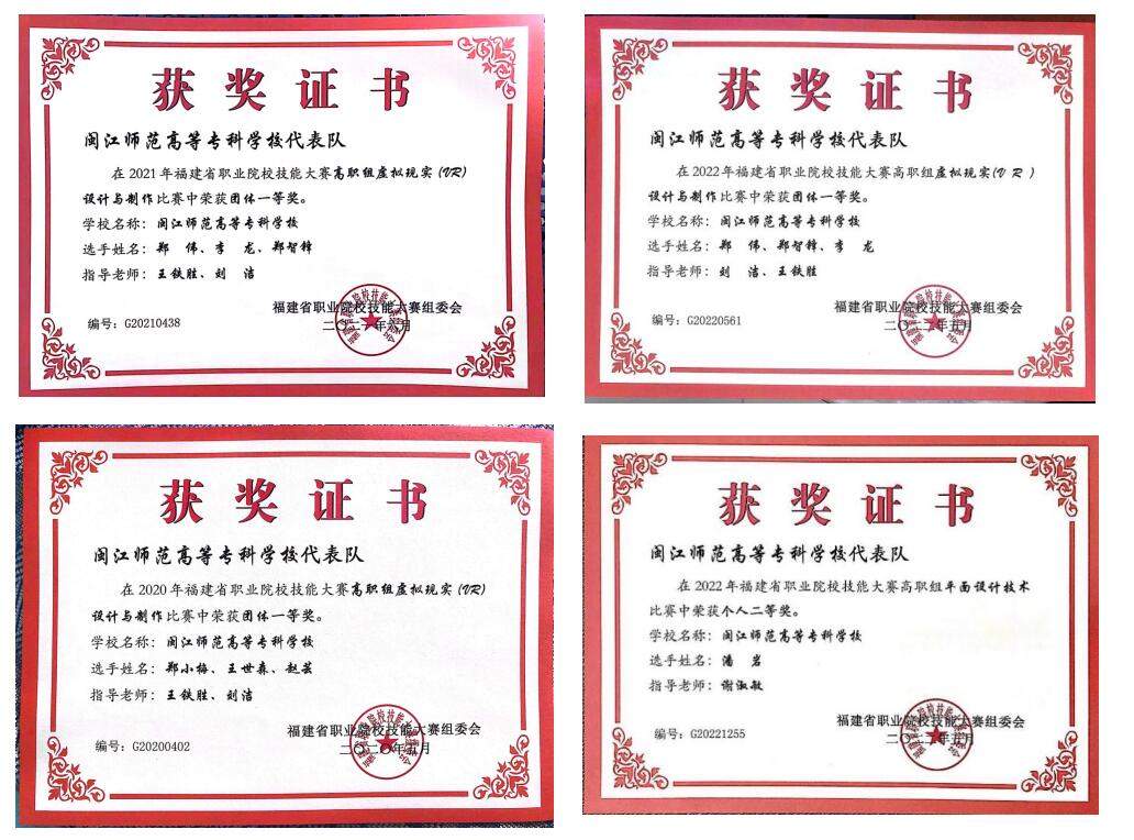 2020年福建省职业院校技能大赛(高职组)虚拟现实(VR)设计与制作赛项一等奖;