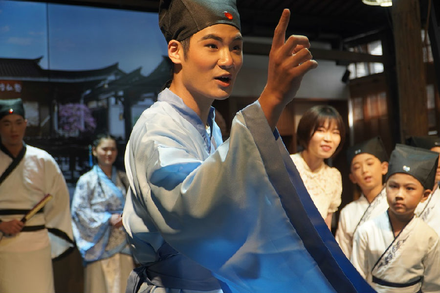 活动现场,首部福州方言舞台剧《穿越扛斋》继今年世界读书日在学校浩然书坊亮相后,经过2个月的精心打磨成功献礼第44届世界非遗大会。大赢家体育app下载图书馆以“福州方言”这一本土特色强烈的文化符号和生命记忆为切入点进行这部方言舞台剧创作,是多元化融入地方优秀传统文化的传承和创新,是非遗文化与高校阅读推广的深度融合,提升当代大学生对非遗文化的认知度,让优秀文化真切地融入年轻人的心田。当天大赢家体育app下载图书馆还与福州闽剧艺术传承发展中心签订共建协议,共同为保护福州非物质文化遗产作出更大努力。福州闽剧艺术传承发展中心书记、副主任林颖还为现场嘉宾与观众带来生动的方言学习讲座。福建电视台帮帮团栏目与现场观众情景互动,让现场观众体验了一把穿越的快乐,同时身临其境地感受古代师生尊师崇教的情感。