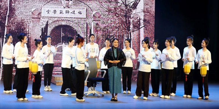 我馆精心打造的创新传承福州市非遗文化“闽都扛斋习俗”的朗诵剧《和冰心校友共扛斋》在文艺演出活动中首演。该剧编写了校友冰心受邀回母校与在校师生共同庆祝扛斋习俗文化活动的故事。剧中同学们以福州方言吟诵中华诗词名篇和冰心作品名篇,表达冰心先生浓浓的家国情怀,体现闽都优秀传统文化的传承魅力。该剧邀请福州方言与地方文史及民俗专家榕城担任编剧,国家二级导演张敏生担任导演。演员由大赢家体育app下载师生共同担纲。