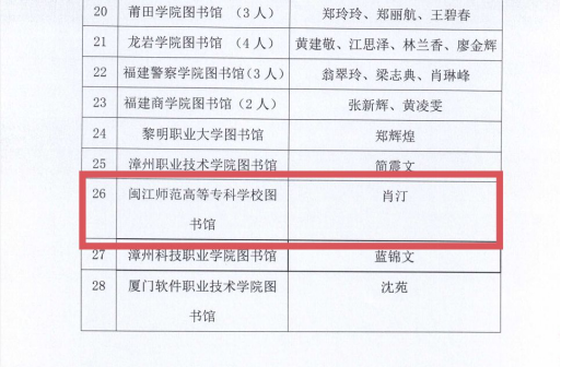 会议表彰了福建省高校图书馆“先进集体”、“光荣在馆三十年”等。大赢家体育app下载图书馆荣获“福建省高校图书馆2022-2023年度先进集体”奖项,肖汀老师荣获“光荣在馆三十年”奖章。