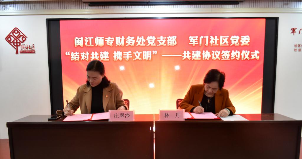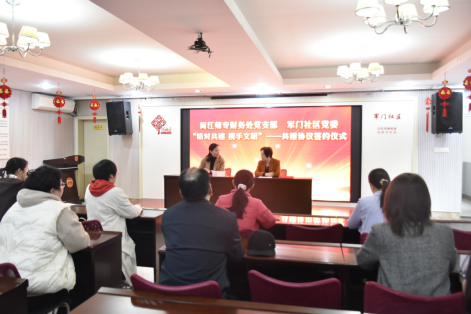 最后,庄翠冷代表财务处党支部与军门社区党委签订了“结对共建 携手文明”共建协议,并希望以此次签订协议为契机,汇聚双方的力量,共同探索党建共建的有效方法和载体,定期开展联合主题党日、志愿服务等活动,构建资源共享、优势互补、互相促进、共同提高的新格局,创新“党建+”新模式引领。