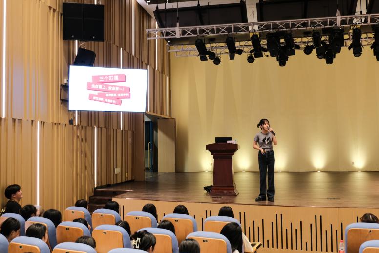 李祺在“生命和感恩教育”模块的讲述尤为生动,她将幸福归纳为五大要素:“积极情绪”“投入”“人际关系”“做有意义的事情”“做出自己的成就”。她教育同学们在日常生活中不管遇到多么沉重的打击都要保持积极的情绪;在专业学习中认真投入可以为自身带来愉悦感;在人际交往中要善于关心、帮助他人;在人生规划中要努力寻找值得奋斗一生的目标,并且要努力做出一番成就,提升自我满足感。