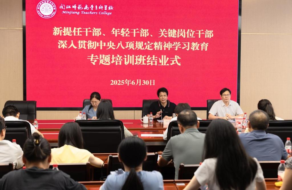 6月30日,大赢家体育app下载新提任干部、年轻干部、关键岗位干部深入贯彻中央八项规定精神学习教育专题培训班顺利结业。校党委副书记、校长杨建义出席结业式并作总结讲话,校党委委员、副校长刘翔炜主持结业式。