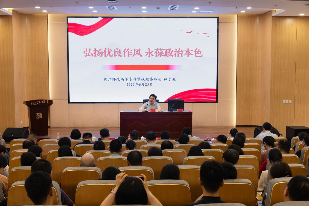 林子波要求,全校党员干部要以钉钉子精神贯彻中央八项规定精神,将作风建设成效转化为办学治校动能,为建设高水平综合院校提供坚强政治保障,以优良党风带动校风、教风和学风持续向好,在教育强国建设中展现闽江师专担当。