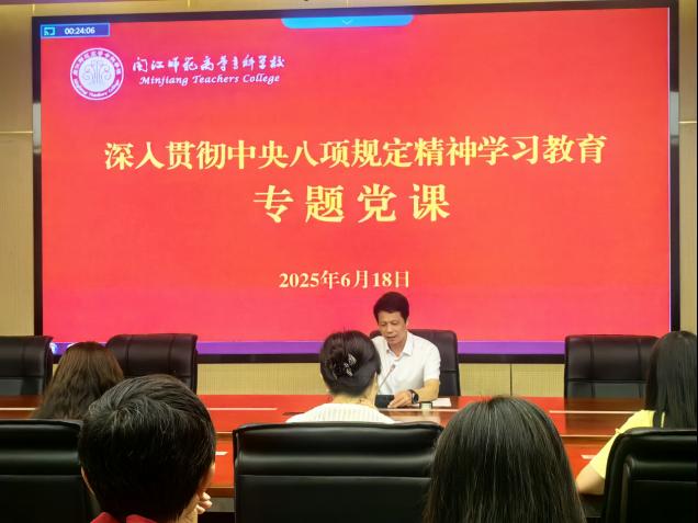 6月18日,大赢家体育app下载党委副书记、校长杨建义以“中央八项规定:破解大党独有难题的路径切口”为题,为党政办公室党支部和马克思主义学院党总支全体党员干部精心讲授了一堂内容详实、意义深远的专题党课。