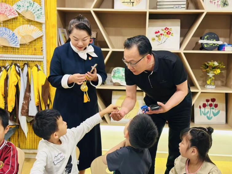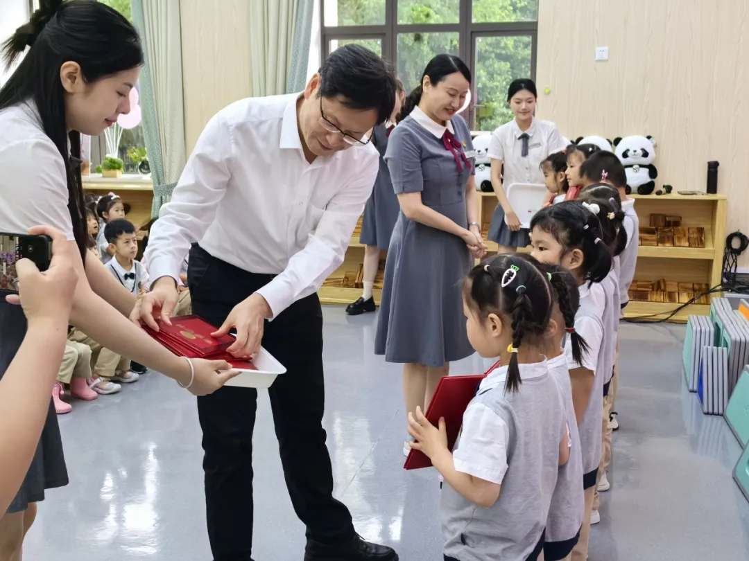 在附属第四幼儿园,陈群一行实地参观了园所的整体环境,了解园所文化、课程建设等情况,对园所“怡然”园本特色教育理念下的环境创设和课程建设给予充分肯定,并饶有兴致观看了孩子们的精彩表演《小小接班人》。陈群为孩子们送上了精心准备的六一儿童节礼物,并表达了节日祝福,祝愿孩子们健康快乐成长。