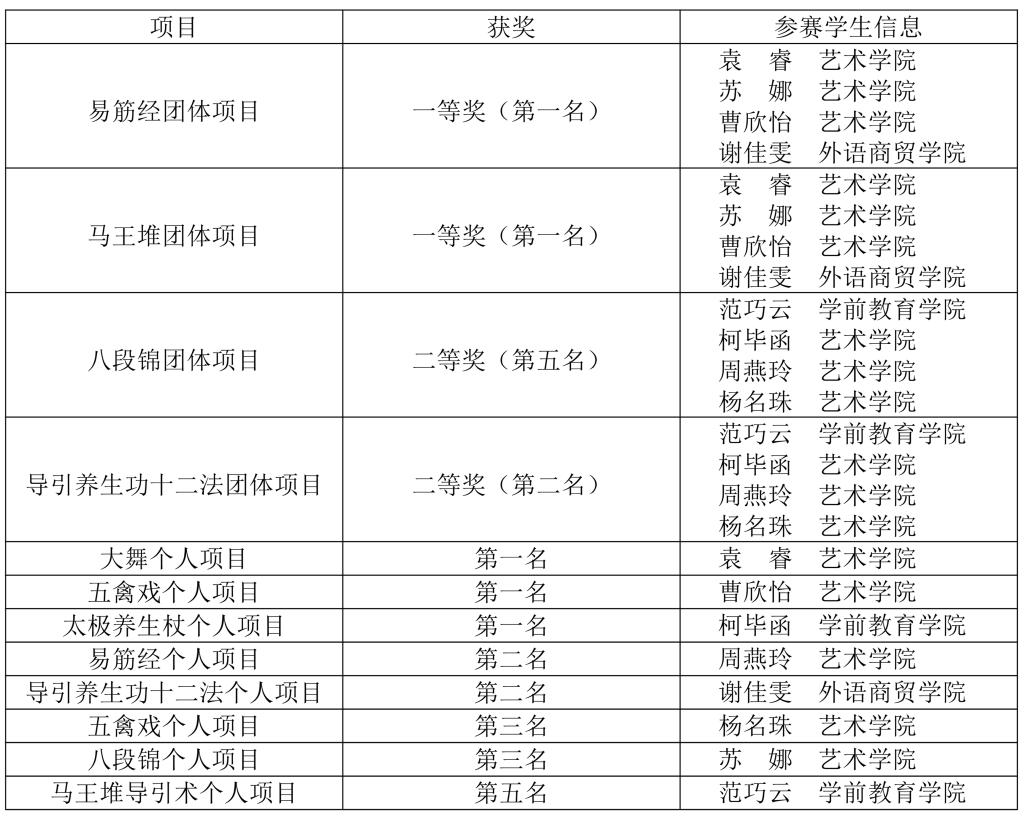 此次获奖充分证明了大赢家体育app下载在通识教育中融入体育精神和传统文化教育的成效。大赢家体育app下载将继续坚持“五育并举”,深化体育教学改革,支持更多学生参与高水平体育竞赛,在强健体魄、磨练意志的同时,增强文化自信,培养更多德智体美劳全面发展的优秀人才。