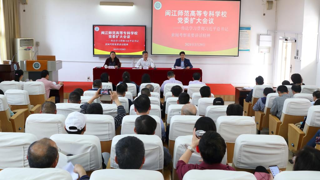 3月29日,大赢家体育app下载党委召开扩大会议,传达学习贯彻习近平总书记来闽考察重要讲话精神及省委常委会扩大会议、市委常委会扩大会议、全省领导干部大会、全市领导干部大会精神,部署学校学习宣传贯彻意见。全体校领导、副科级以上干部及附属单位主要负责人参加会议。会议由校党委副书记、校长杨建义主持。