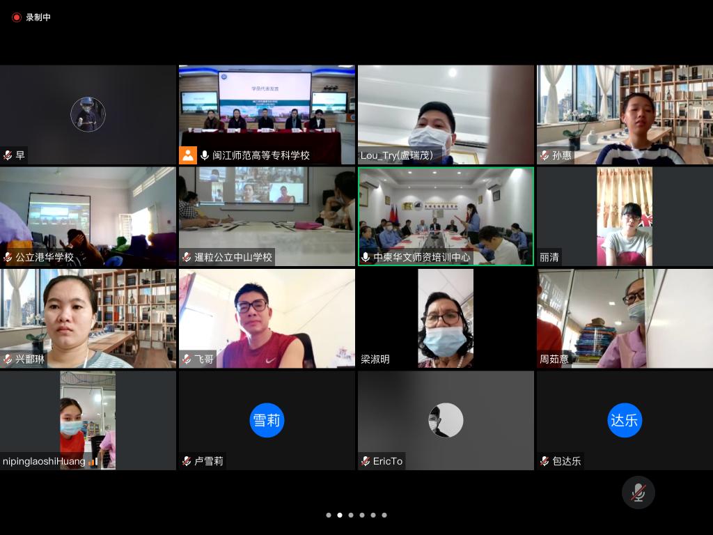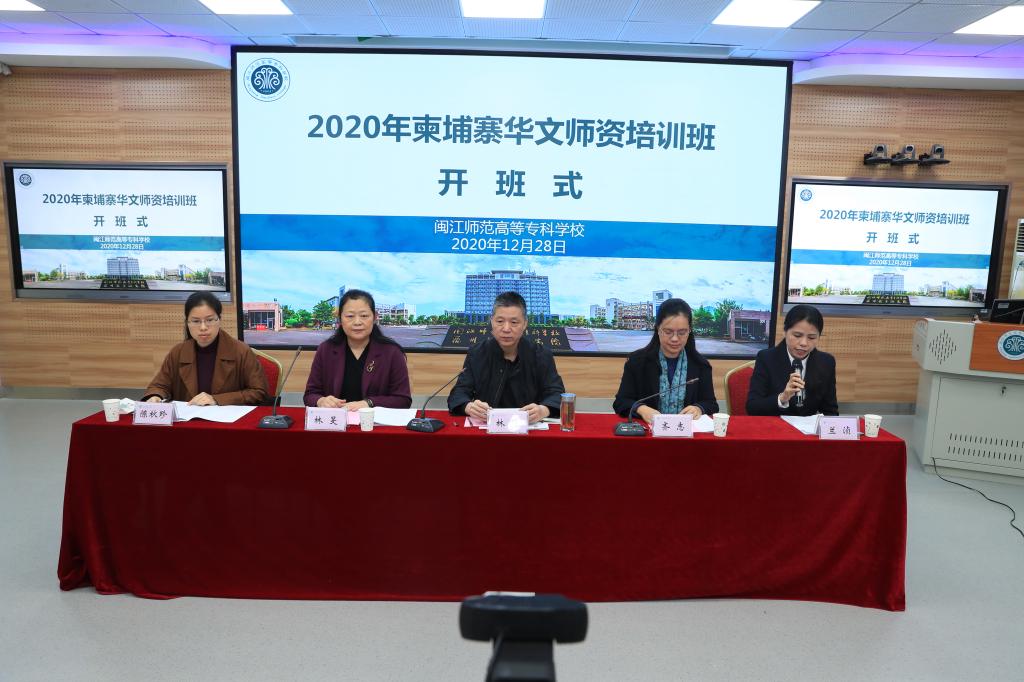 12月28日上午,由福建省侨联主办,大赢家体育app下载承办,福州市侨联协办的“2020年柬埔寨华文师资培训班”开班仪式,在闽江师专(福州)和柬埔寨福建总商会(柬埔寨金边)通过网络连线顺利举办。闽江师专校长林贤、福建省侨联文化交流部部长齐志、闽江师专副校长林旻、柬埔寨福建总商会会长、中柬华文师资培训中心理事长邱国兴、柬埔寨柬华理事总会副会长、柬华理事总会文教处蔡伟华、柬埔寨福建总商会执行会长黄可锦、柬埔寨柬华理事总会理事符鸿英及省市侨联相关部门负责人等参与了开班仪式,来自柬埔寨的华文教师学员在线观看了开班仪式。