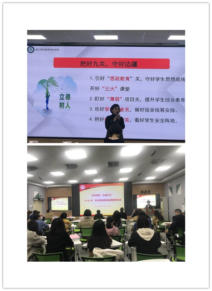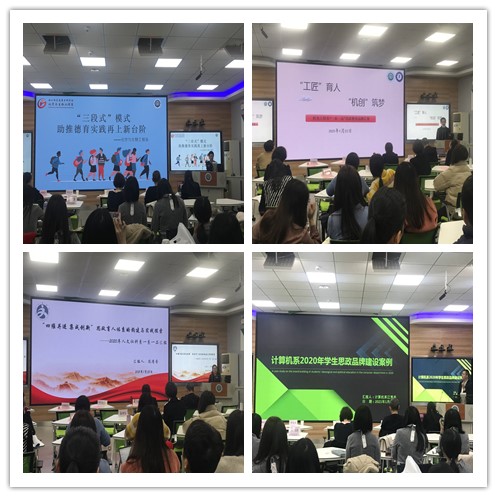 论坛上,各系部针对系部文化特色,结合学生特点,进行学生思政品牌建设案例交流。机电系分享了“‘工匠’育人,‘机创’筑梦”为主题的思政教育品牌情况;人文社科系汇报了“四维并进 集成创新”思政育人体系的构建与实践探索概况;初教系分享了“生命之光 ,‘爱’为底色”师范生生命教育的建构的探索;外语系分享了“三位一体,内外联动,多元包容”——“TIM”育人工程的实践;计算机系分享了“两式两精”学生思政品牌建设思考;艺术系分享了“以形传神,形神兼备”为主题的学生思政品牌汇报;化工系分享了“三段式”教育模式,助推德育实践再上新台阶;学前系分享了“实施‘四大工程’, 培育‘五心’学生”学生思政品牌探索。