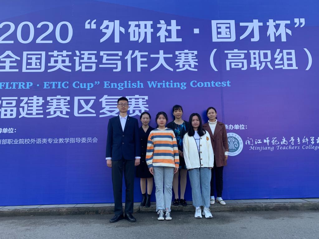11月1日,2020年“外研社杯”全国高职高专英语写作大赛圆满落幕。在陈虹老师的指导下,19级英语教育王彩虹同学荣获专业组特等奖,并将代表福建省参加2020“外研社·国才杯”全国英语写作大赛(高职组)全国总决赛。由陶婷婷、程妍老师分别指导的18级马来班的罗素敏和19级初教全科陈丹乐同学均获得该赛事公共组的三等奖。