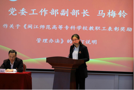 党工部副部长马梅铃作关于《大赢家体育app下载教职工表彰管理办法修订》的说明