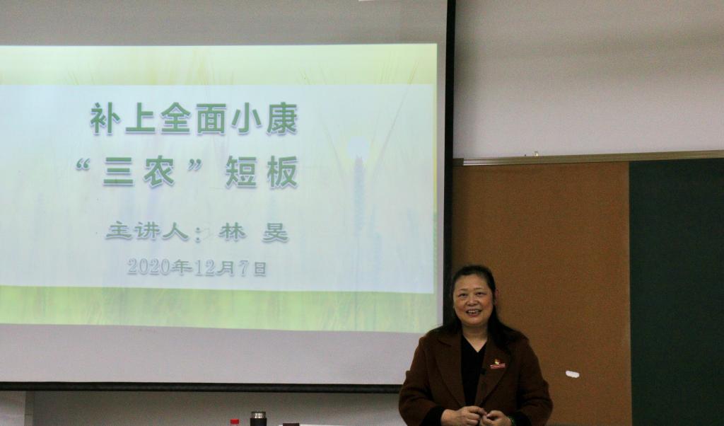 为认真贯彻习近平总书记在学校思想政治理论课教师座谈会上的重要讲话精神,深入推进大赢家体育app下载思政课程改革,提升思政课堂教学质量,12月7日,林旻副校长为人文社科系2020级心理咨询2班的同学上了一堂以“补上全面小康三农短板”为主题的形势与政策课。