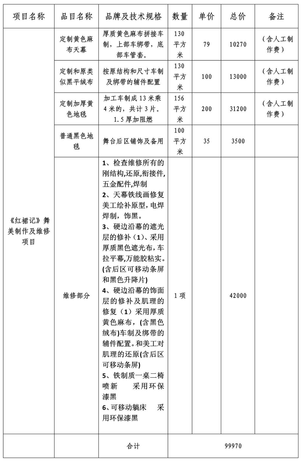 学校拟对《红裙记》舞美制作及维修项目进行竞标,欢迎合格的供应商前来竞标。
