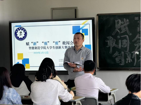 3月12日,智能制造学院在17号楼302教室举办“赋‘新’强‘质’ 敢闯会创”大学生创新大赛决赛。学院党总支副书记吕志达,教师李新竹、王淑霞、李海灵担任评委。