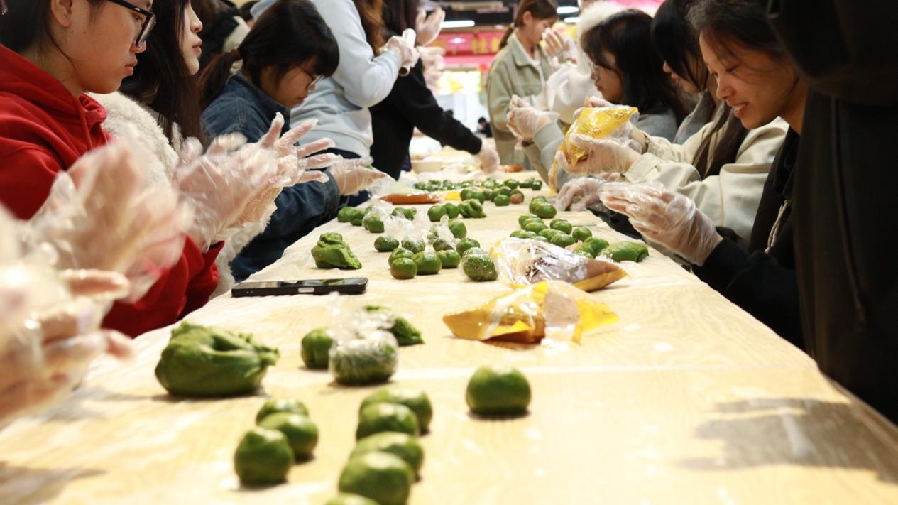 活动前,工作人员现场演示了青团的制作过程。在工作人员的指导下,师生们挽起袖子戴上手套,分工协作。从揉面团、分面团、包馅料、保鲜封膜,每个步骤同学们都认真对待。在互帮互助中,同学们顺利完成了各自的作品。活动现场洋溢着浓厚的节日氛围。青团制作完成后,同学们将饱含心意的青团精心装入盒中,赠送给舍友、同学。一个个青团传递着节日的问候,更拉近了师生之间的距离,让校园充满了温暖与和谐。