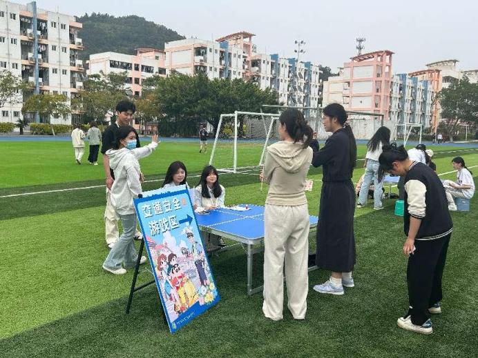 此次活动内容丰富多元,形式新颖独特。在反诈安全区域,工作人员通过剖析真实典型案例,结合趣味互动问答的形式,深入浅出地向同学们揭示了常见诈骗手段的种种套路,传授了实用的防范方法;交通安全区以信号灯辨别为切入点,借助生动直观的展示与讲解,让同学们迅速掌握交通安全规则;急救安全区,工作人员现场细致演示心肺复苏、包扎等急救技能,同学们纷纷踊跃上手实操。大家在轻松愉悦的氛围中,沉浸式学习安全知识,熟练掌握实用安全技能。