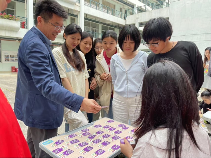 “共赴书香之约”主题趣味活动现场,五个别具特色的互动摊位为同学们搭建起知识交流的平台。在“书籍速说”摊位前,同学们热情分享喜爱的书籍;“名言连线”和“快问快答”摊位上,同学们思维敏捷,以惊人的反应速度应对挑战;最有趣的“角色盲盒”摊位,同学们抽取盲盒后生动模仿角色,惟妙惟肖的表演让大家身临其境,引得阵阵欢笑与喝彩;“文韵趣猜”区域的猜灯谜和看图猜成语活动,激发同学们的智慧火花,充分展现出丰富的知识储备与敏捷的应变能力。这一系列活动,让同学们尽情感受读书的快乐,在轻松氛围中交流思想、增长知识,进一步激发阅读热情。